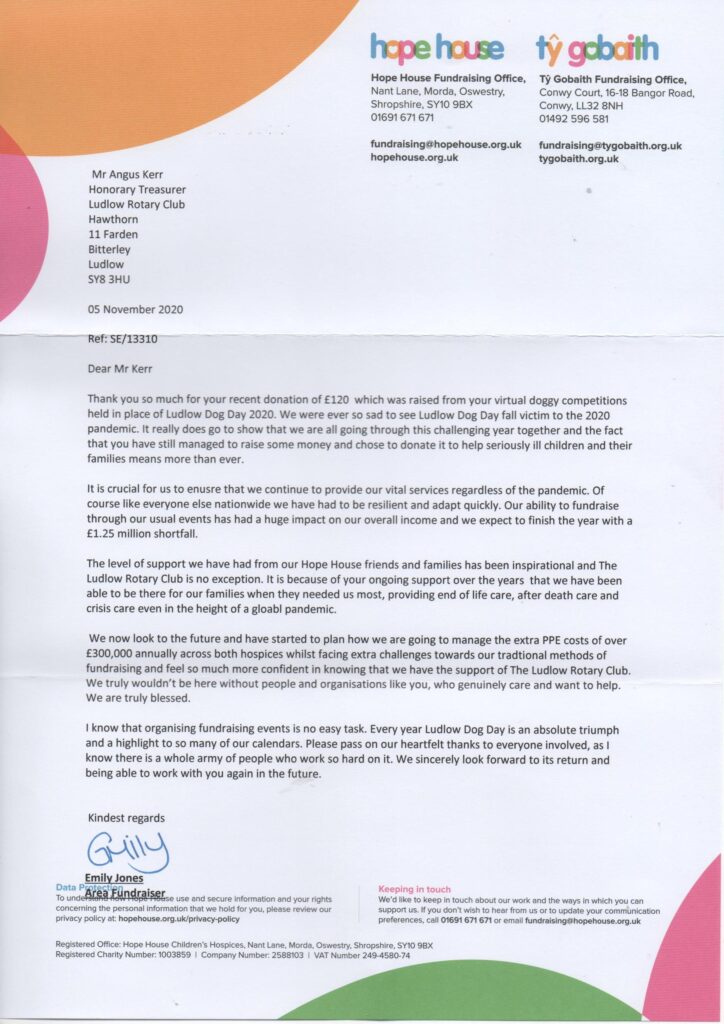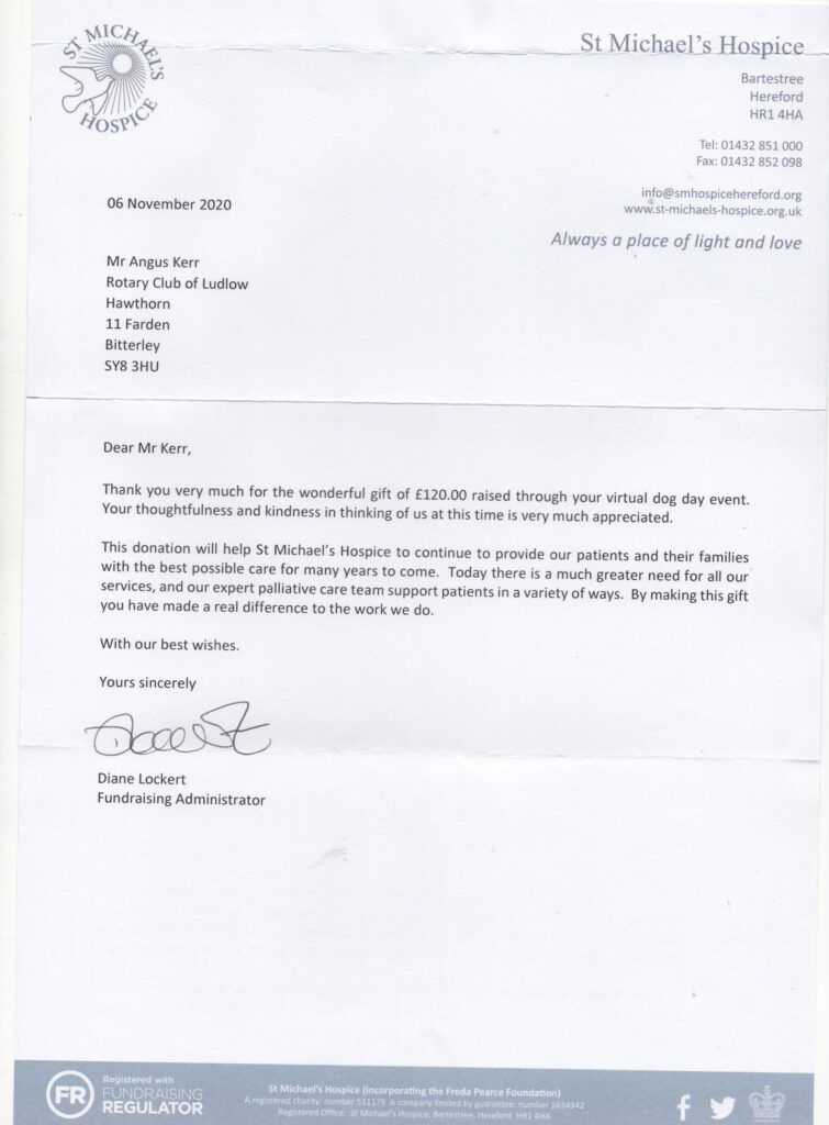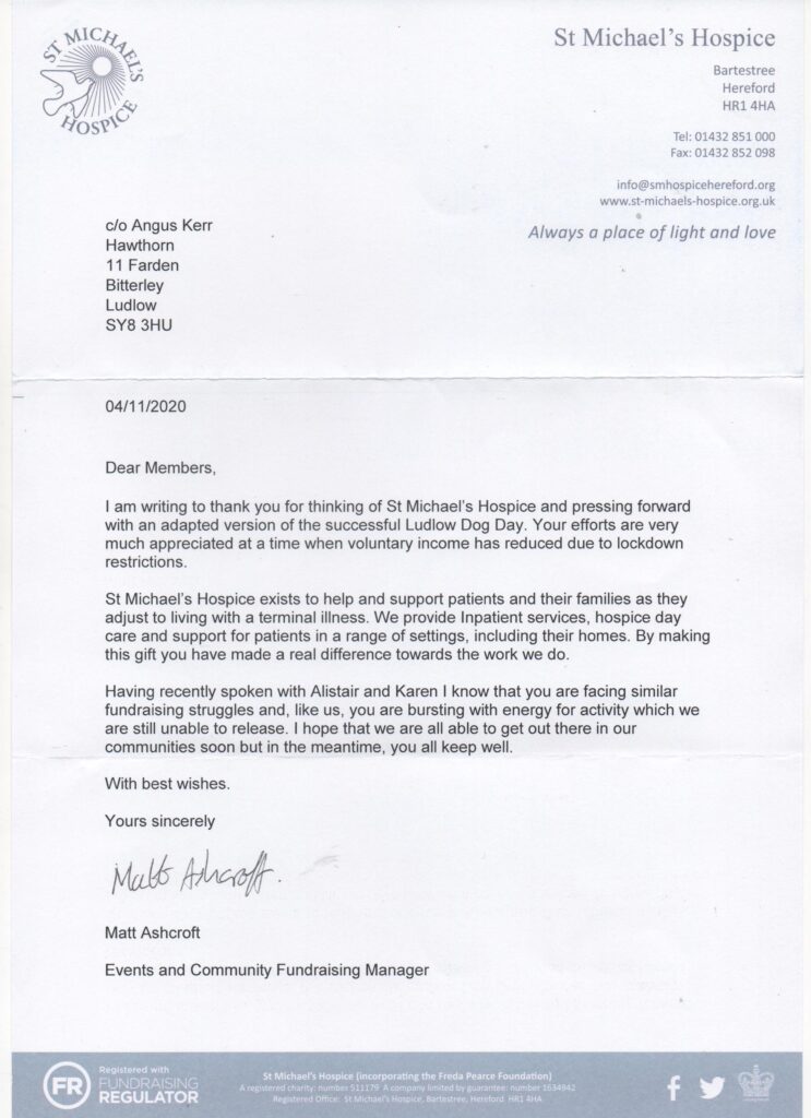 Great letters of thanks from Hope House and St Michael’s Hospice for the support from Virtual Dog Day 2020. Our thanks to everyone who took part.